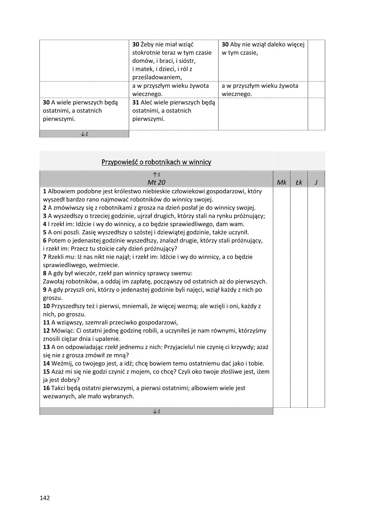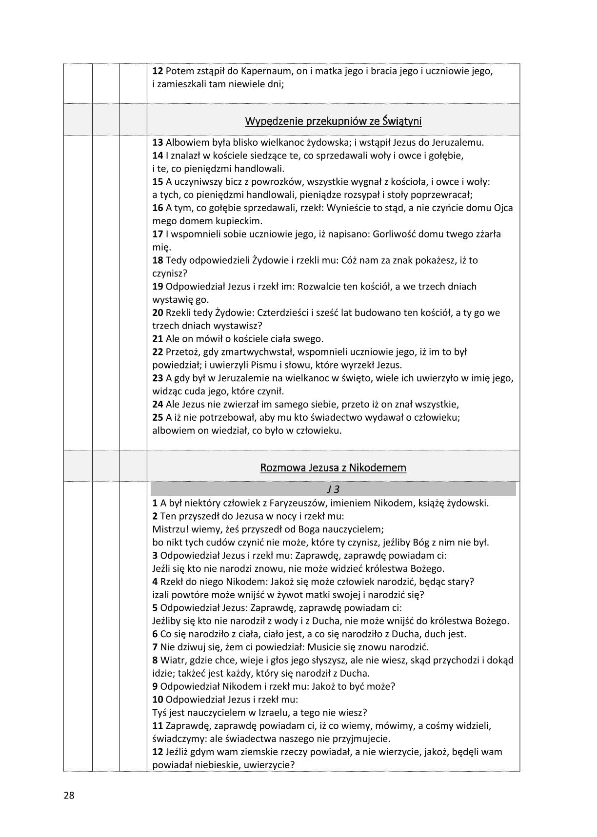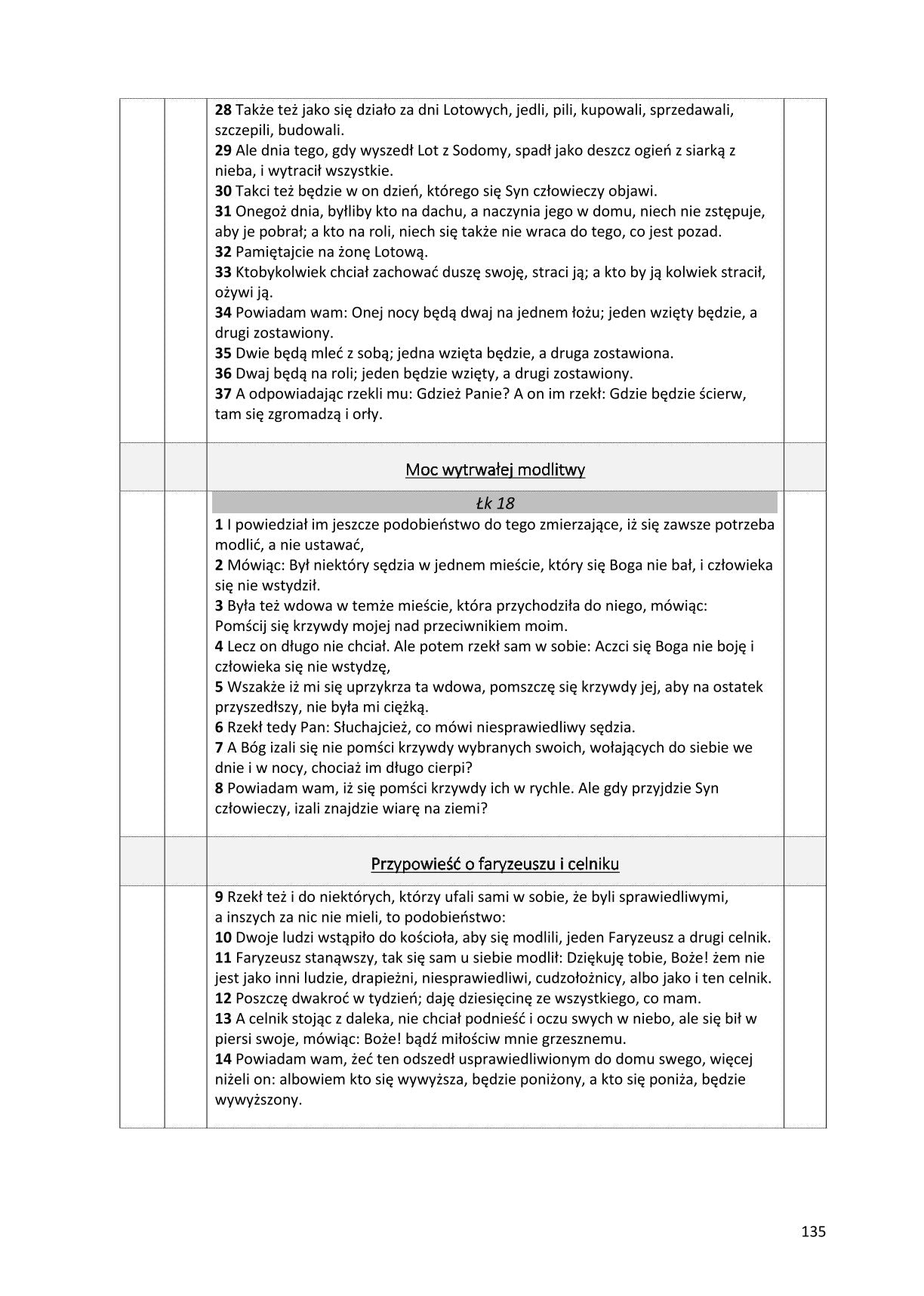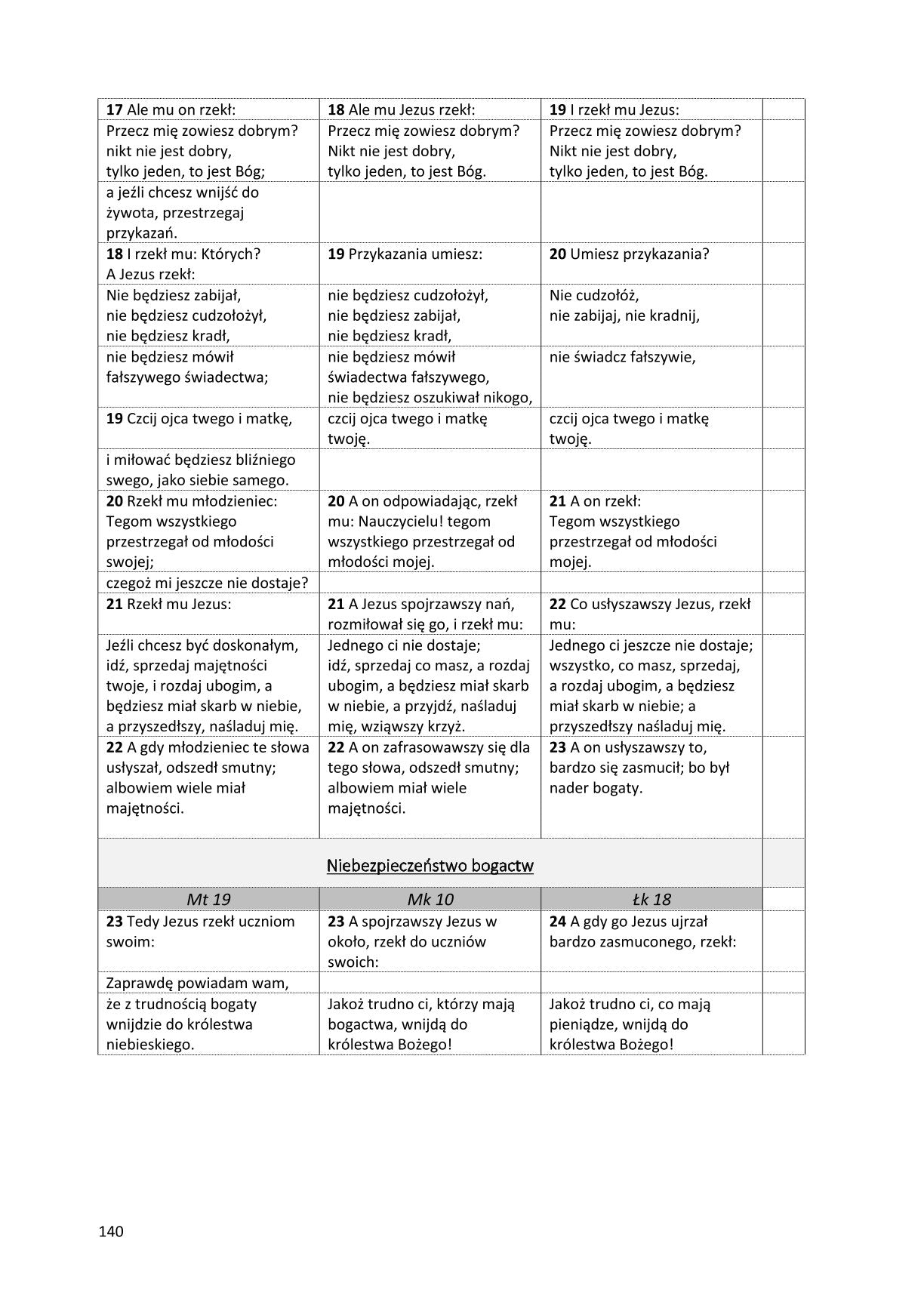 Wszystkie cztery Ewangelie są przejrzyście uporządkowane w formie tabeli, co pozwala na zachowanie przeglądu i skuteczne wyszukiwanie informacji.