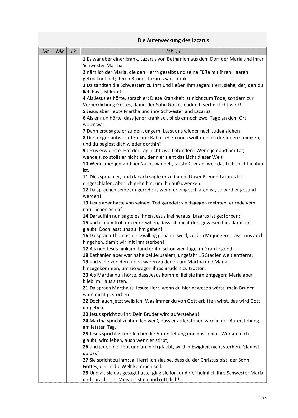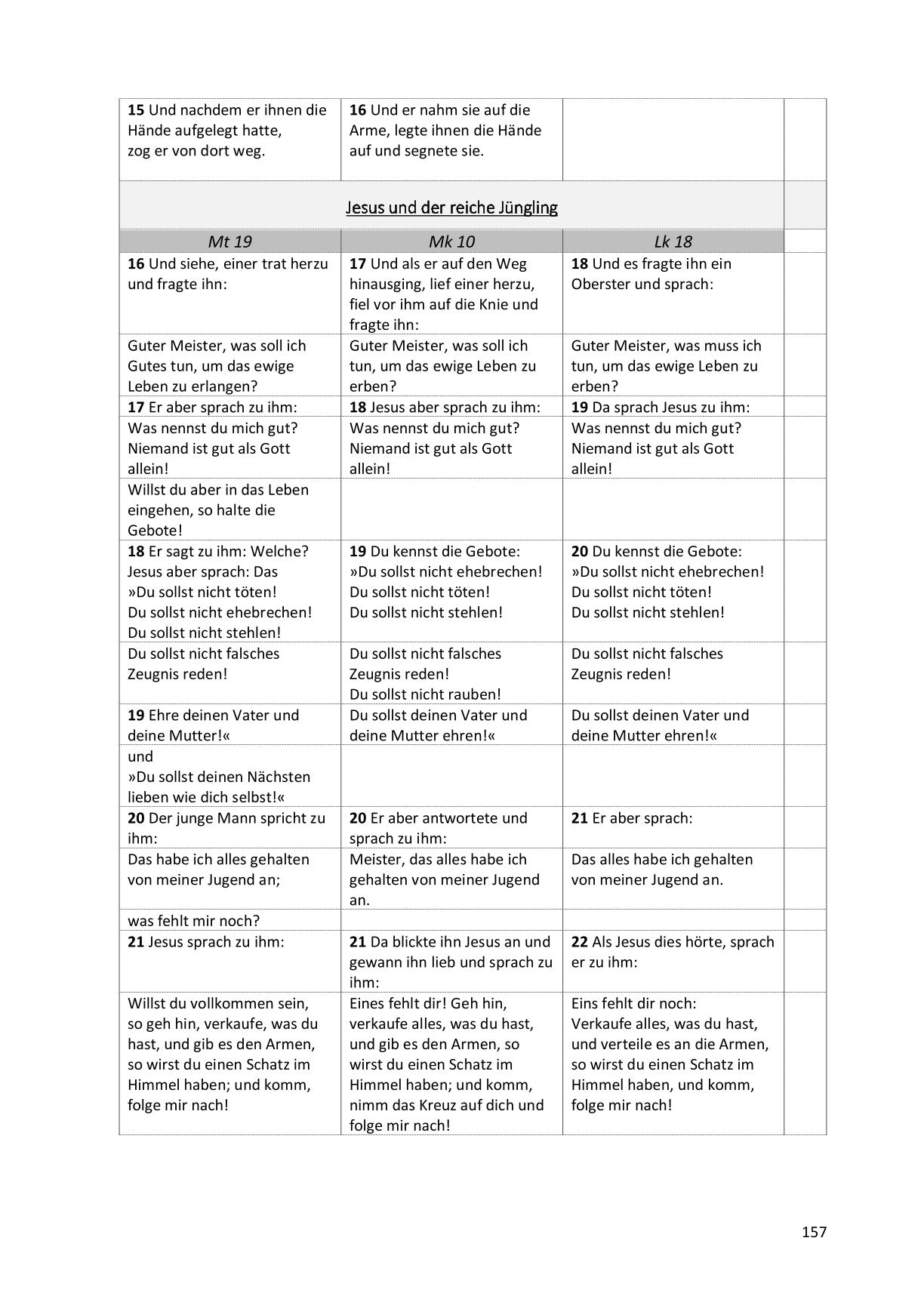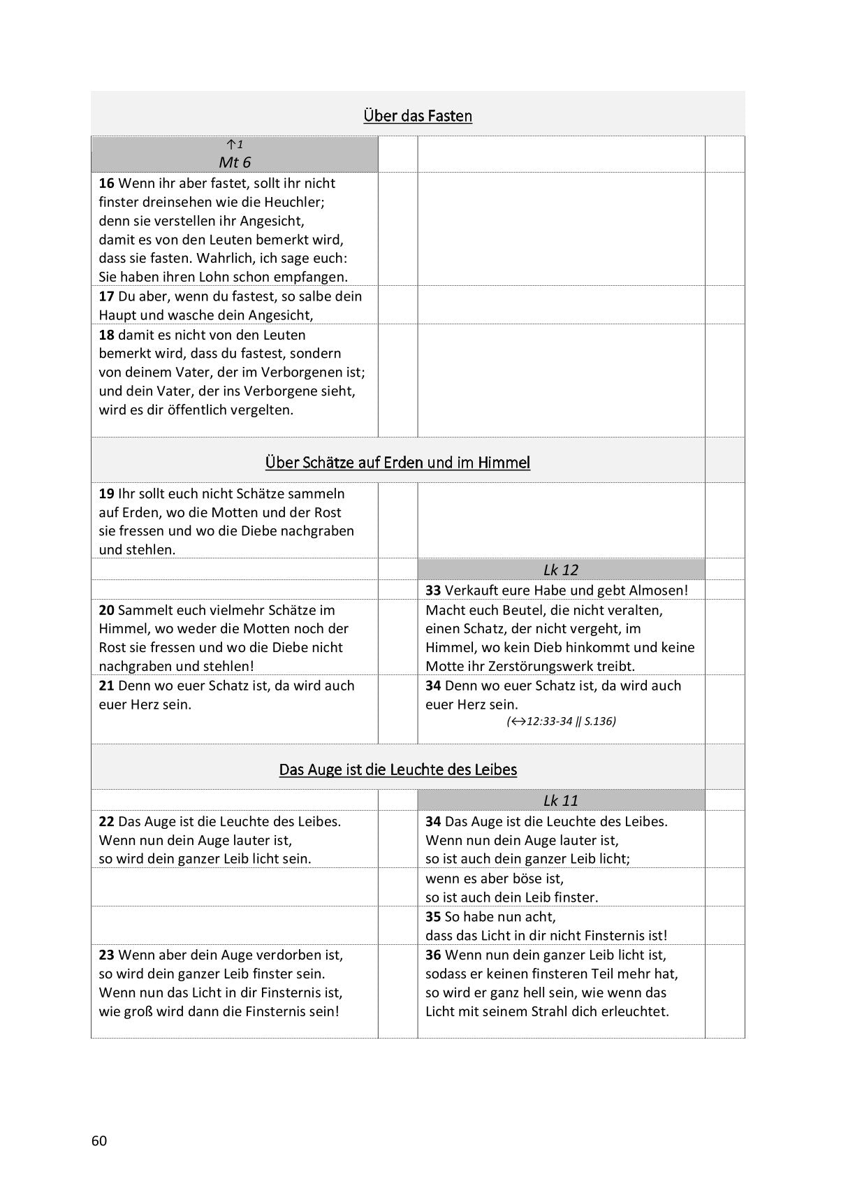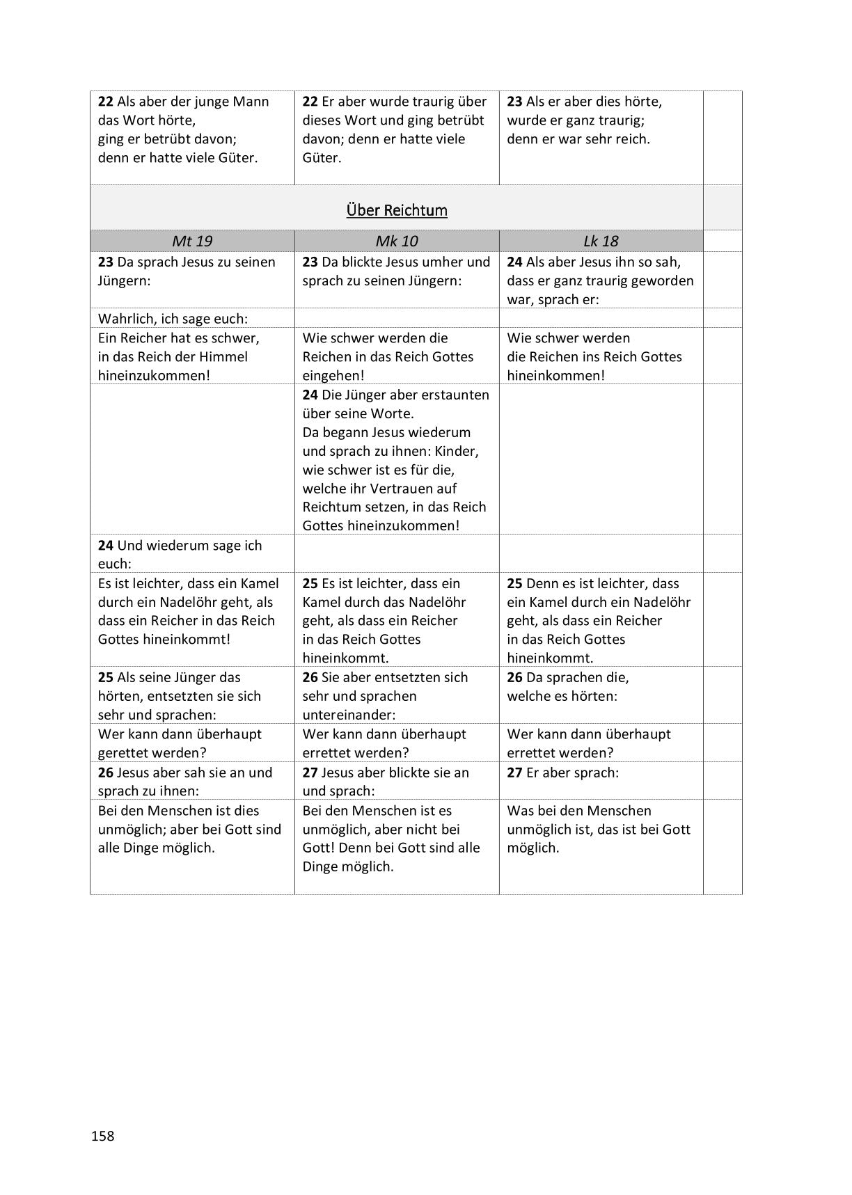 Die thematische Gliederung der Bibelverse ermöglicht es Ihnen, die Texte mühelos Absatz für Absatz, Vers für Vers und Wort für Wort zu erkunden. Die übersichtliche Darstellung mit klaren Trennlinien hilft Ihnen, Gemeinsamkeiten und Unterschiede auf einen Blick zu erfassen.