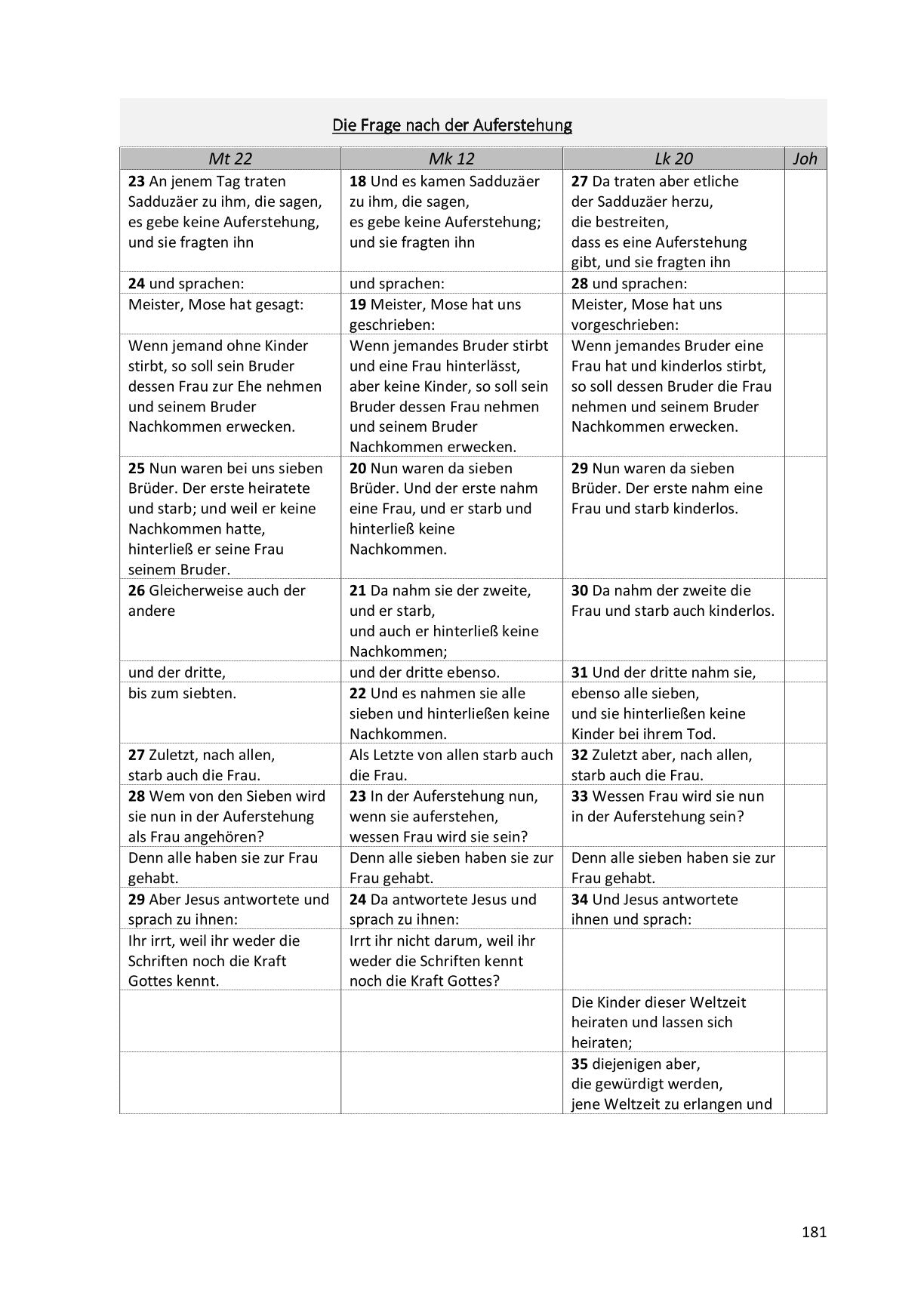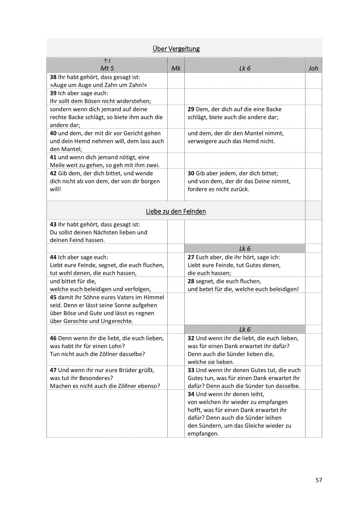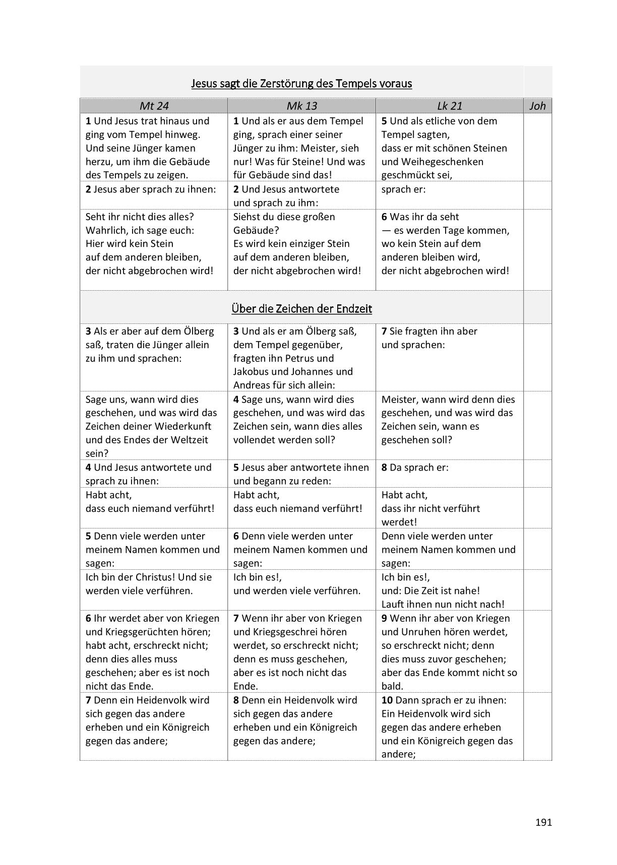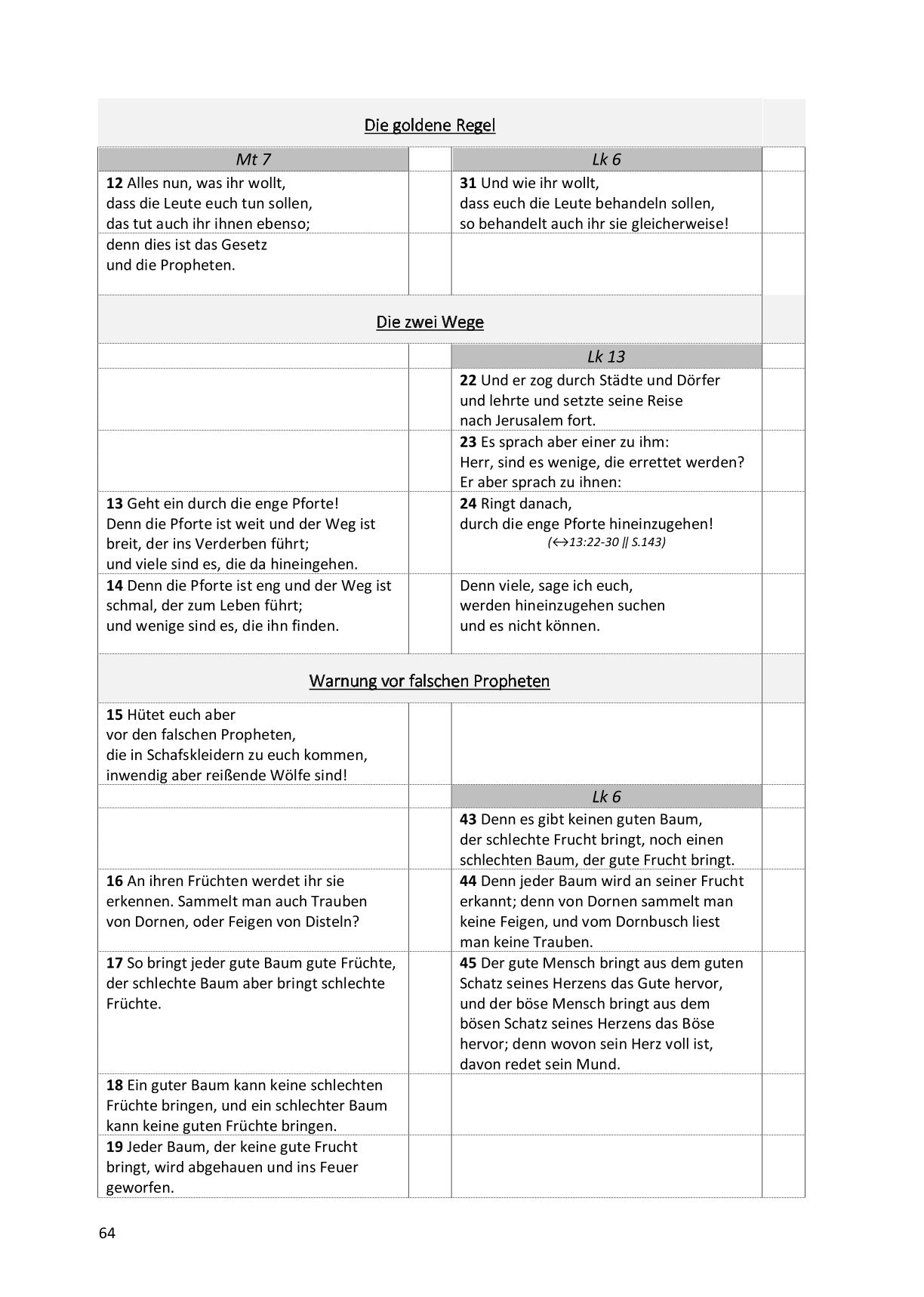 Die thematische Gliederung der Bibelverse ermöglicht es Ihnen, die Texte mühelos Absatz für Absatz, Vers für Vers und Wort für Wort zu erkunden. Die übersichtliche Darstellung mit klaren Trennlinien hilft Ihnen, Gemeinsamkeiten und Unterschiede auf einen Blick zu erfassen.
