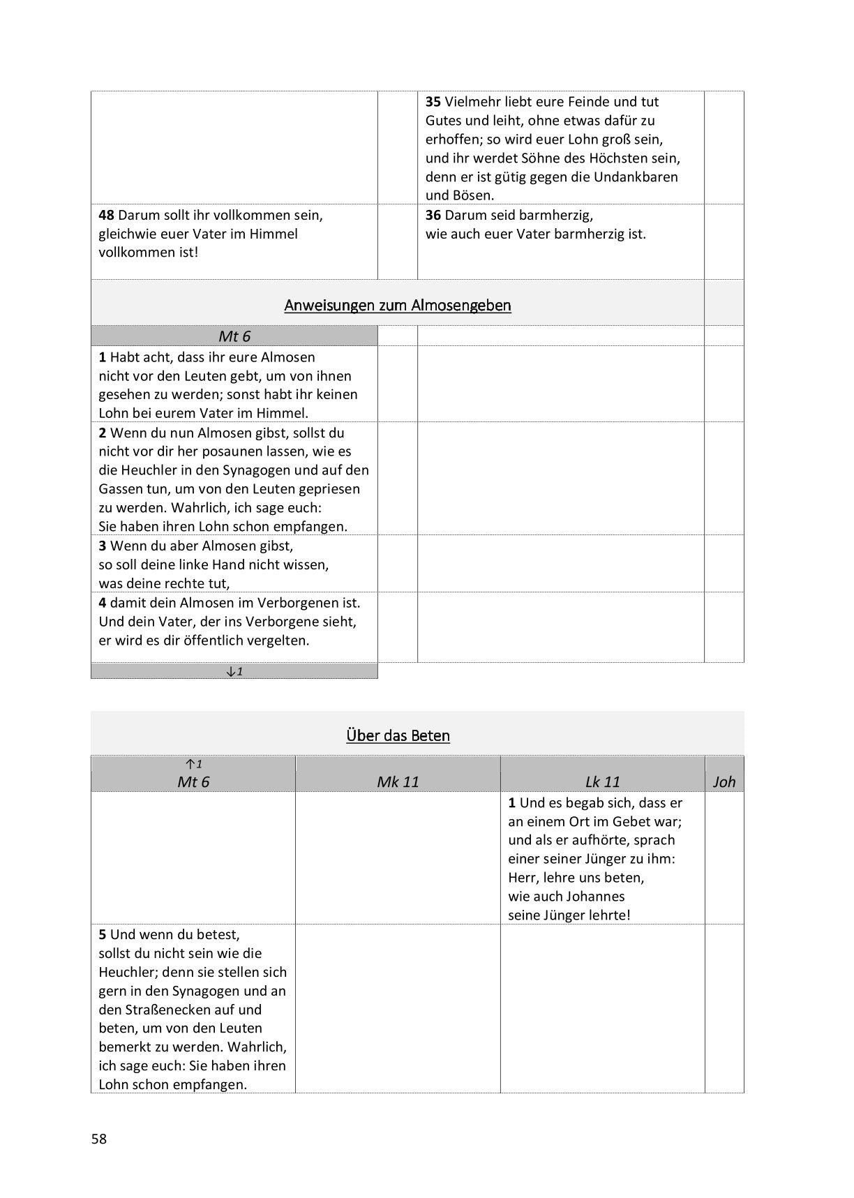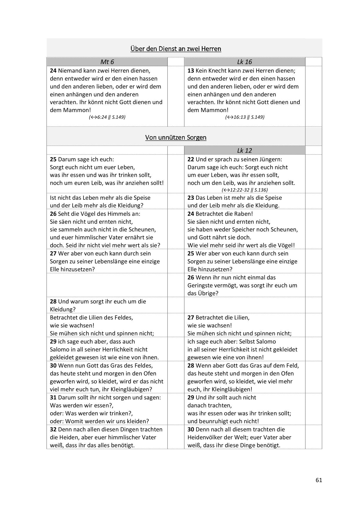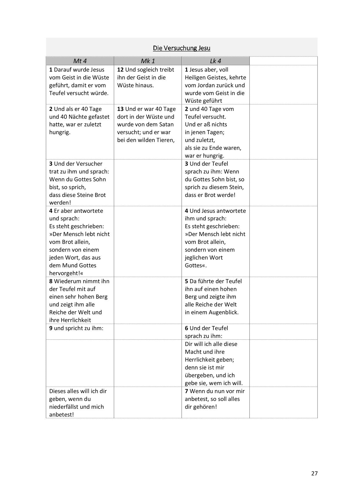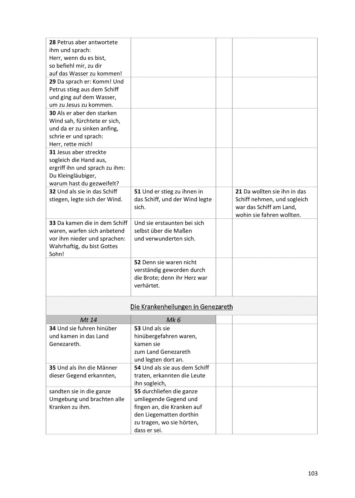Die thematische Gliederung der Bibelverse ermöglicht es Ihnen, die Texte mühelos Absatz für Absatz, Vers für Vers und Wort für Wort zu erkunden. Die übersichtliche Darstellung mit klaren Trennlinien hilft Ihnen, Gemeinsamkeiten und Unterschiede auf einen Blick zu erfassen.
