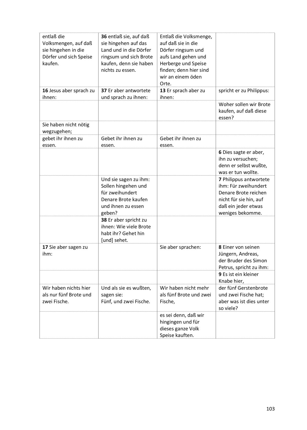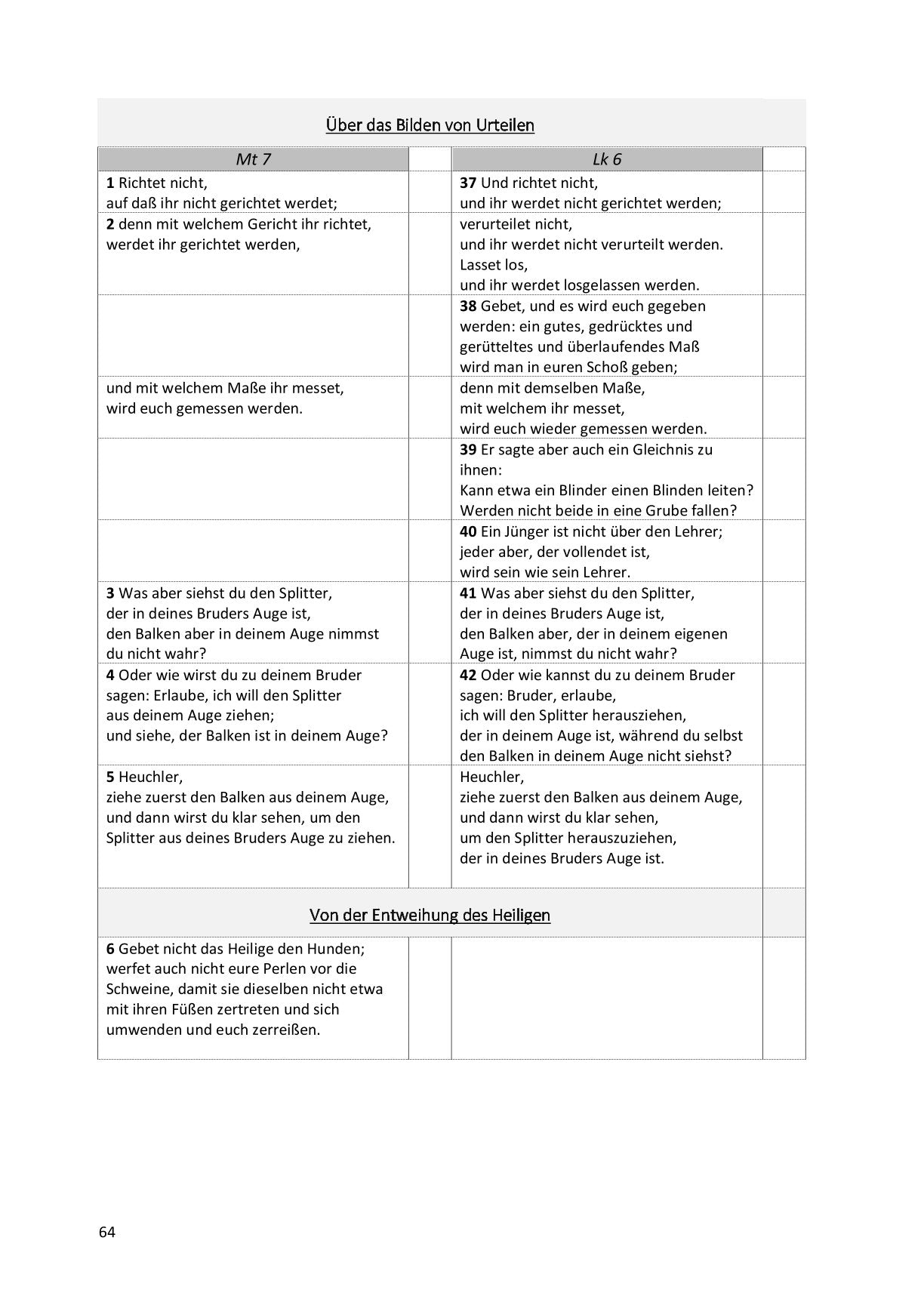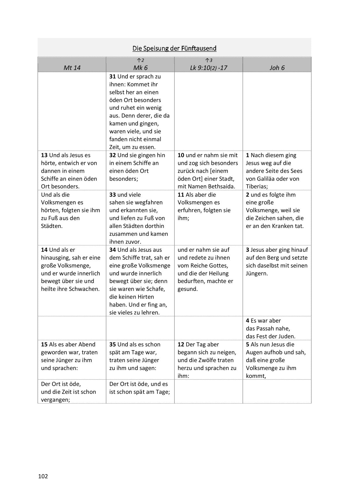 Die thematische Gliederung der Bibelverse ermöglicht es Ihnen, die Texte mühelos Absatz für Absatz, Vers für Vers und Wort für Wort zu erkunden. Die übersichtliche Darstellung mit klaren Trennlinien hilft Ihnen, Gemeinsamkeiten und Unterschiede auf einen Blick zu erfassen.