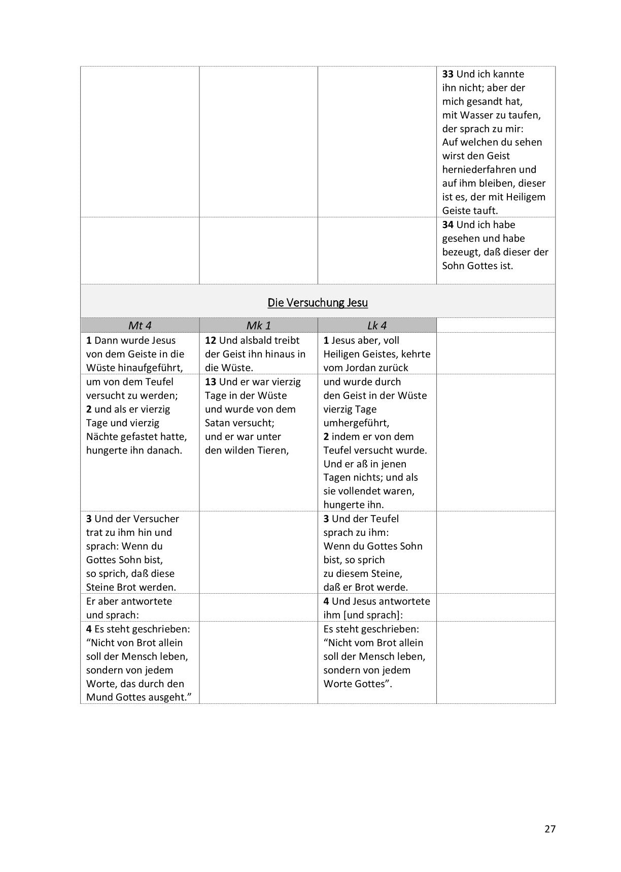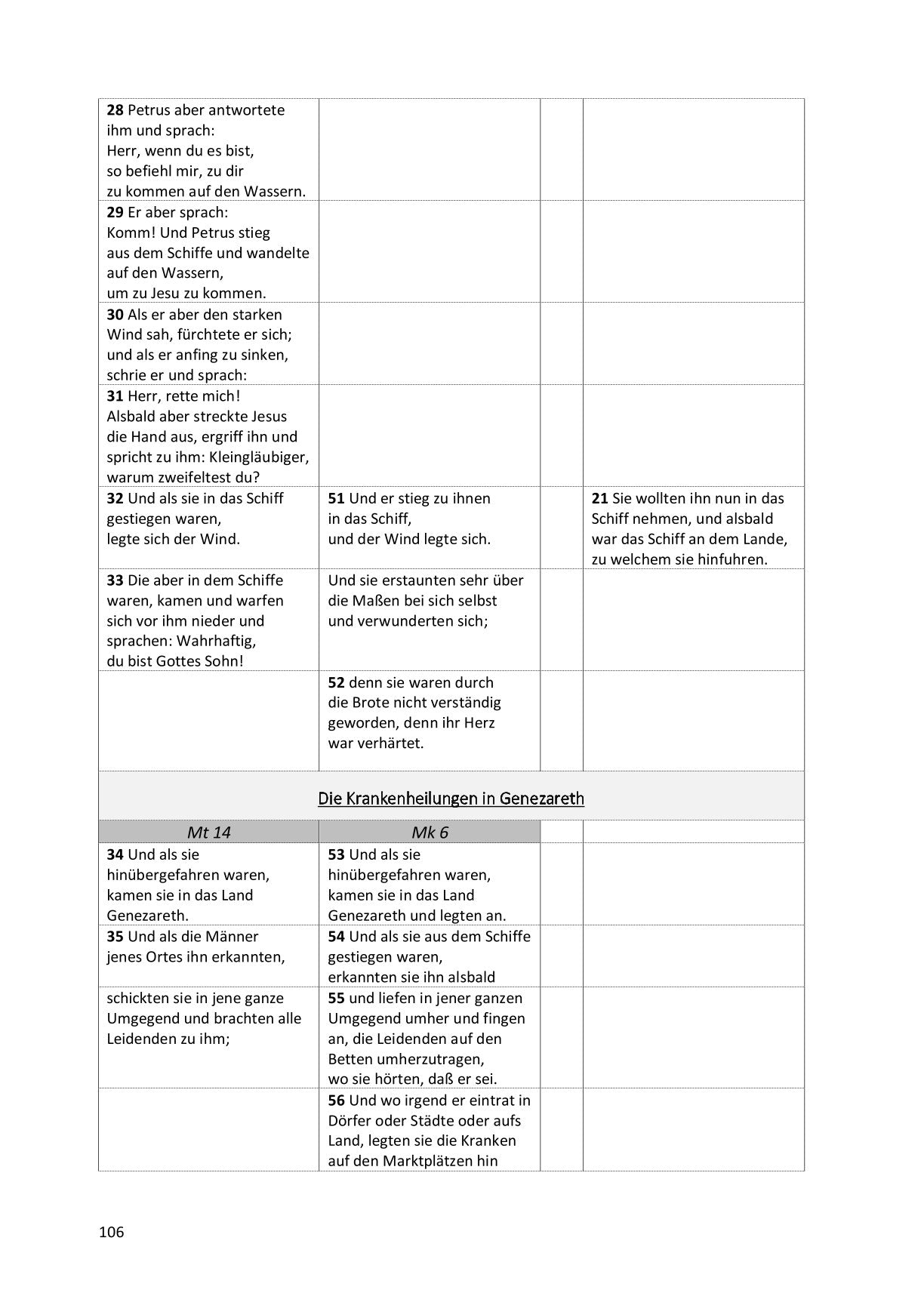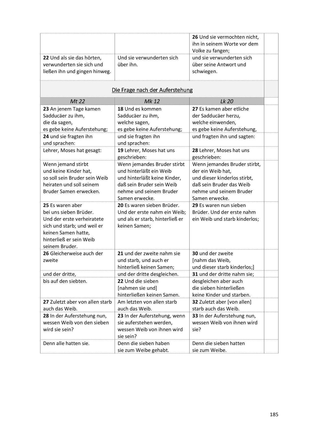 Die thematische Gliederung der Bibelverse ermöglicht es Ihnen, die Texte mühelos Absatz für Absatz, Vers für Vers und Wort für Wort zu erkunden. Die übersichtliche Darstellung mit klaren Trennlinien hilft Ihnen, Gemeinsamkeiten und Unterschiede auf einen Blick zu erfassen.